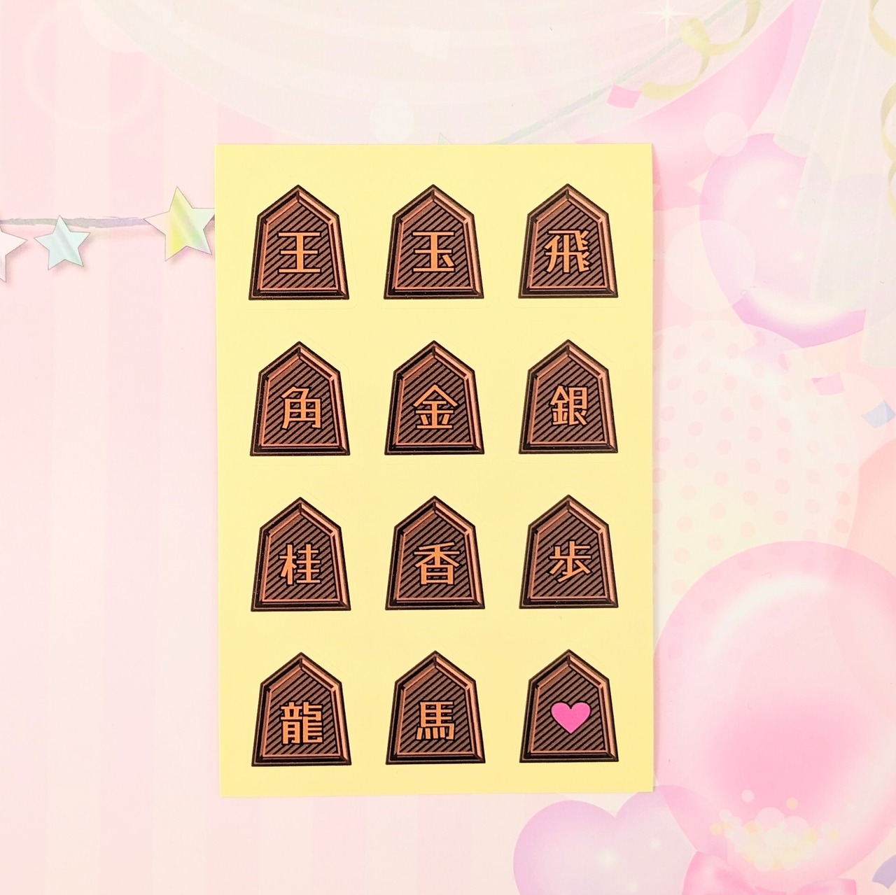 将棋駒の形をしたチョコレートモチーフのシールになります